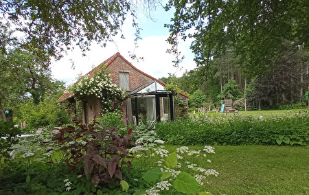 NIEUWRODE • Gezellig vakantiehuisje met een bloementuin van 2ha, gelegen tussen de Hagelandse wijngaarden in een rustige omgeving nabij Leuven.